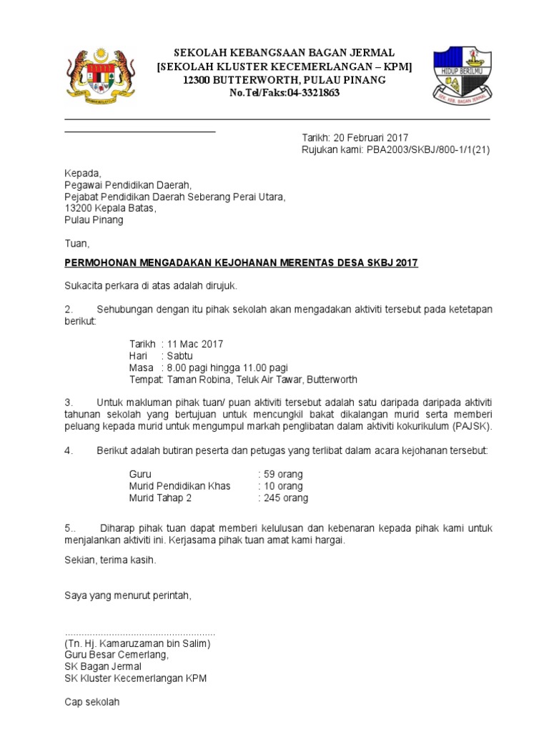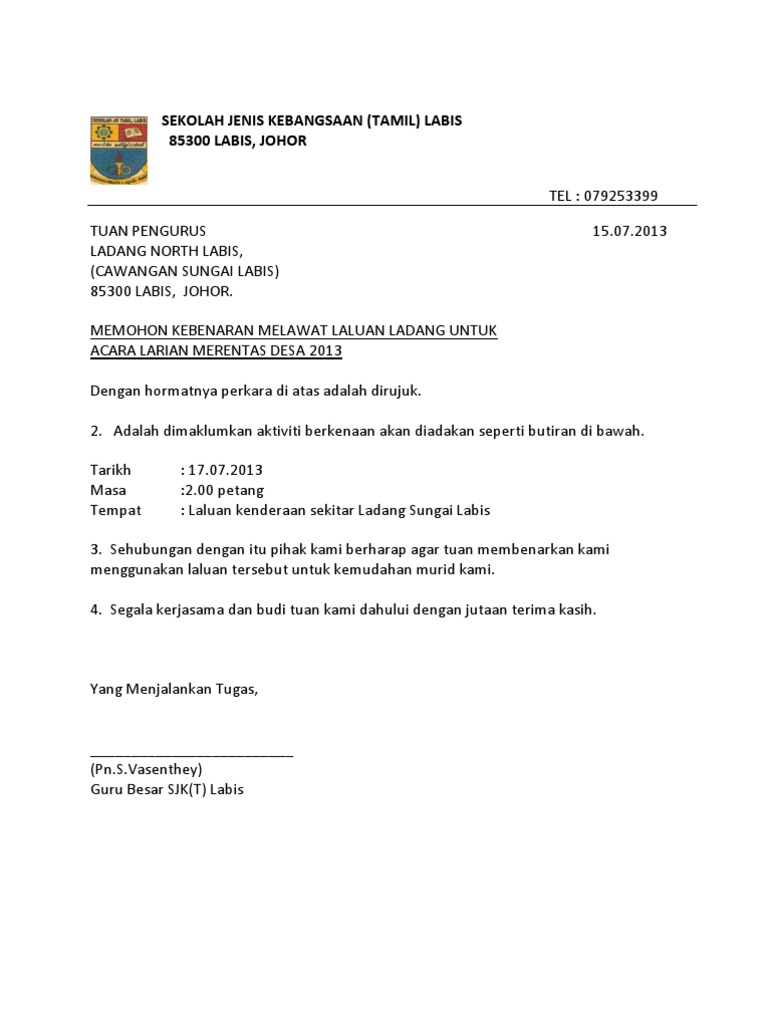 Contoh Surat Menggunakan Laluan Ladaang Untuk Merentas Desa